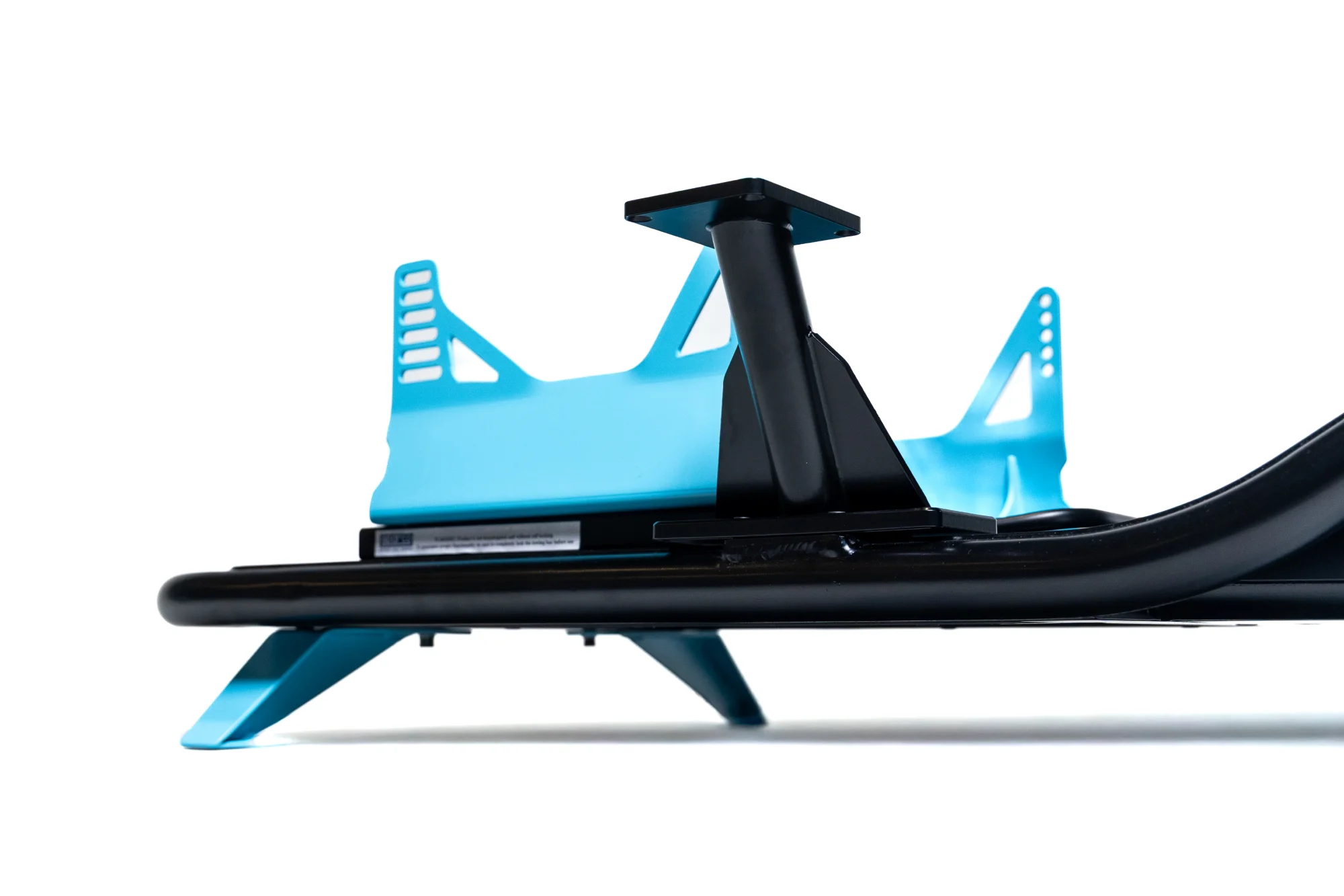 A desk-clamp wheel flexes under force feedback, shifts during hard braking, and puts you in a typing posture with your arms too high and your feet too close. The Novus PS5 mounts the same DD Pro wheelbase on a rigid aluminum chassis. The force feedback arrives clean because nothing between you and the game is absorbing it. The fixed driving position means you develop consistent braking points and racing lines rather than fighting a moving target every session.
